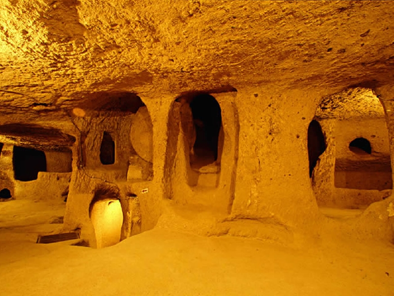 Kaymaklı Underground City; is one of the largest underground settlements in the region. The large area reserved for storage in such a limited area appears to indicate the need to support a large population underground.